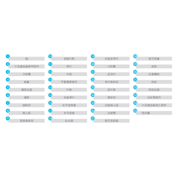 Sealing between the suction section, middle sections, and discharge section of the pump is achieved by sealant. Sealing rings, diffuser sealing rings, etc. are installed between the rotor and the fixed parts for sealing. When the sealing rings are worn to the extent that they affect the pump's performance, they should be replaced in a timely manner.